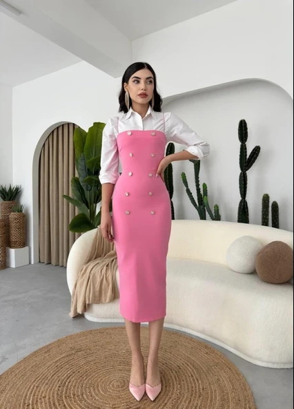 Kadın Kısa Kollu Madonna Yaka önü Kısa Arkası Uzun Ithal Krep Elbise