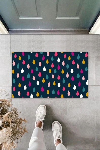Renkli Kapı Önü Paspası Damlalar Desen K-3250