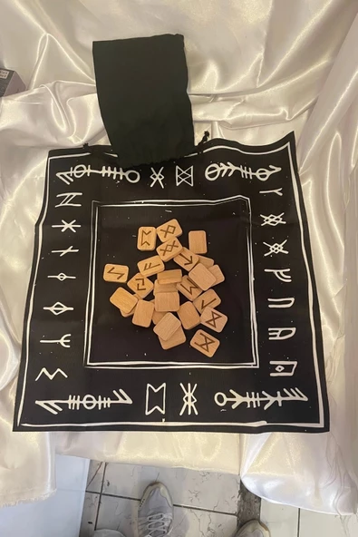 Rune Semboli Taşları Run Taşları Örtüsü Sunak Nordic Runes Örtüsü Sunağı ve Taşları Seti