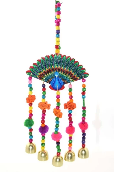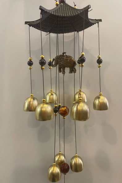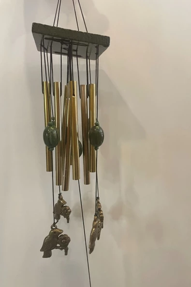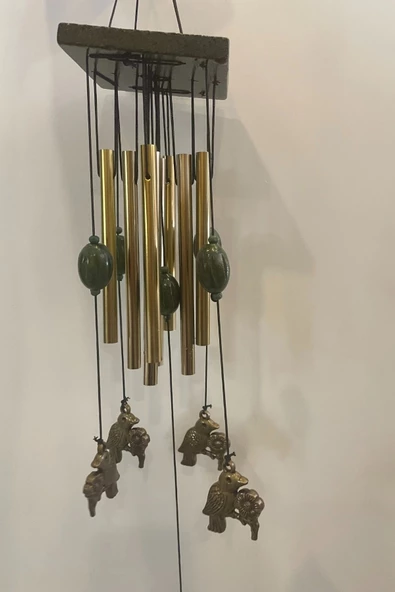 Deprem Çanı Rüzgar Zili Feng Shui Koruyucu Metal El İşi 5 Beş Çanlı Tavuskuşu