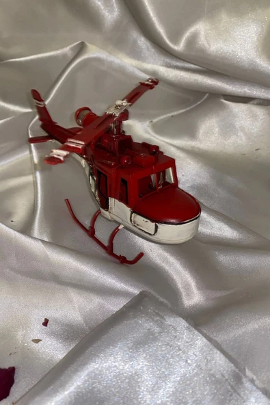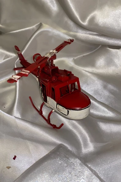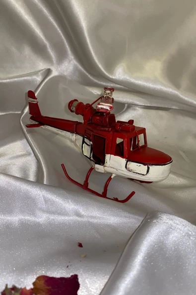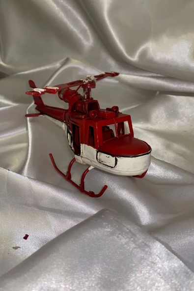 Metal Helikopter Dekoratif Maket El Yapımı Oyuncak Kırmızı Beyaz