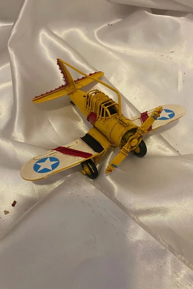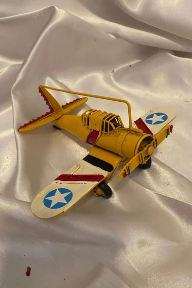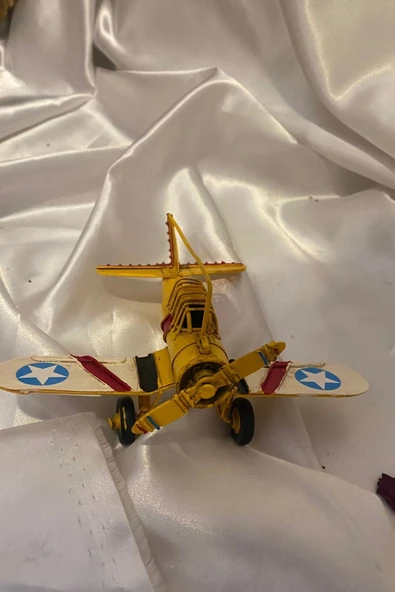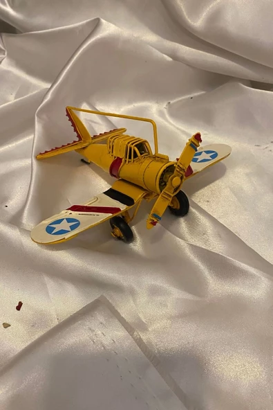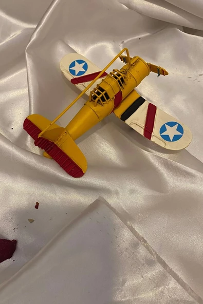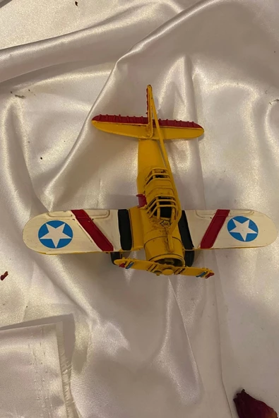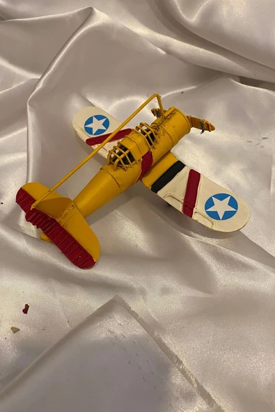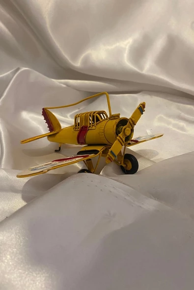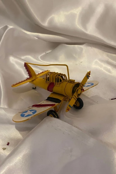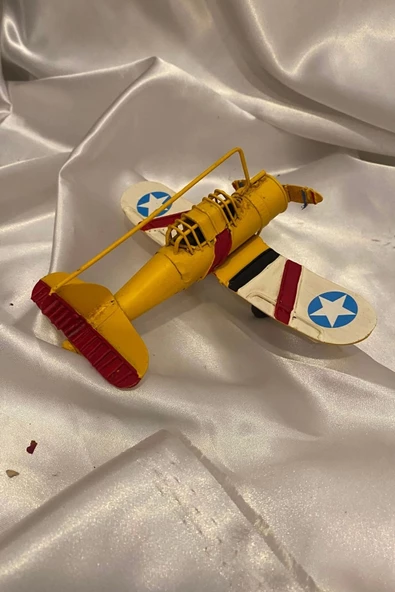 Metal Uçak Dekoratif Maket El Yapımı Oyuncak Teyyare Planör Sarı Kırmızı Beyaz