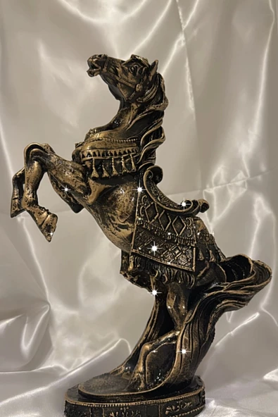 Kaideli At Biblo Şahlanan Kır At Polyester İşlemeli Heykel Şık Tasarım Büyük Bakır Renk