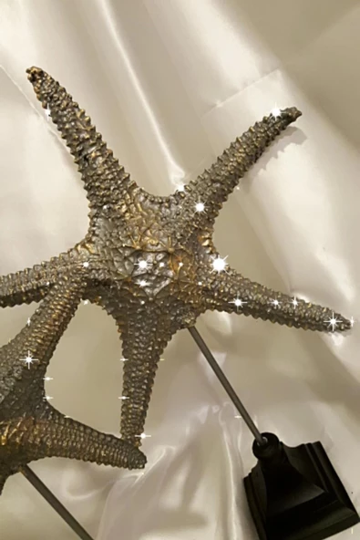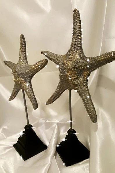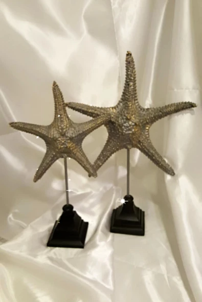 Dekoratif Traverten Zerafet Stone Deniz Yıldızı Biblo 2 Li Ayaklı