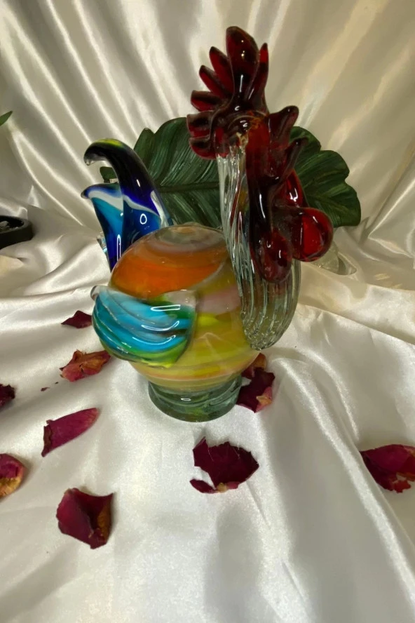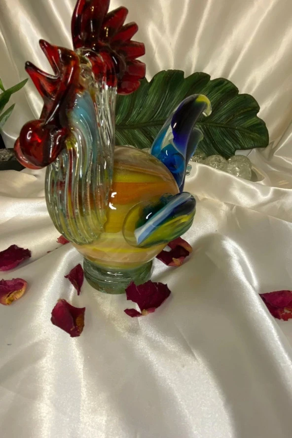 Dekoratif Üfleme Cam Feng Shui Ejderah Yılında Koruyucu Horoz 01