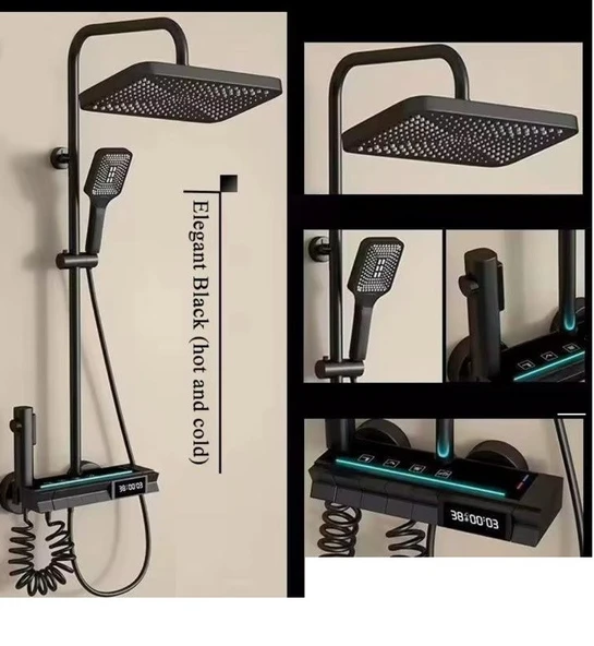 Rena Design Siyah Dijital Ekran Piyano Fonksiyonel Akıllı Duş Sistem Banyo Batarya Robot Yağmurlama Led