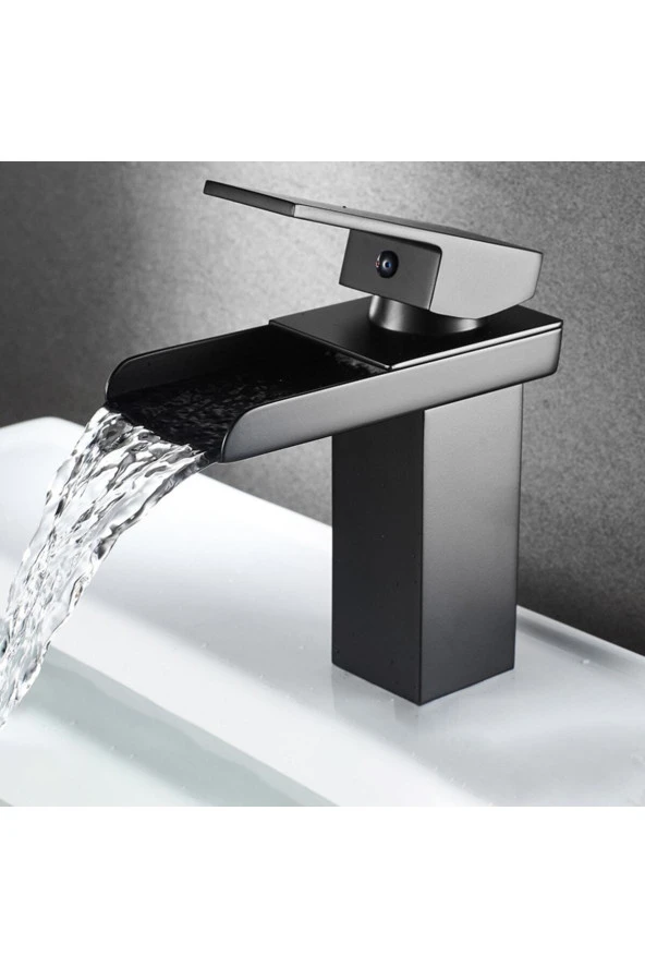 LAVABO BATARYASI MAT SİYAH ŞELALE KARE GÖVDE EĞİMLİ HAVZA BANYO ARMATÜR ÇİFT GİRİŞ LÜKS ERGONAMİK