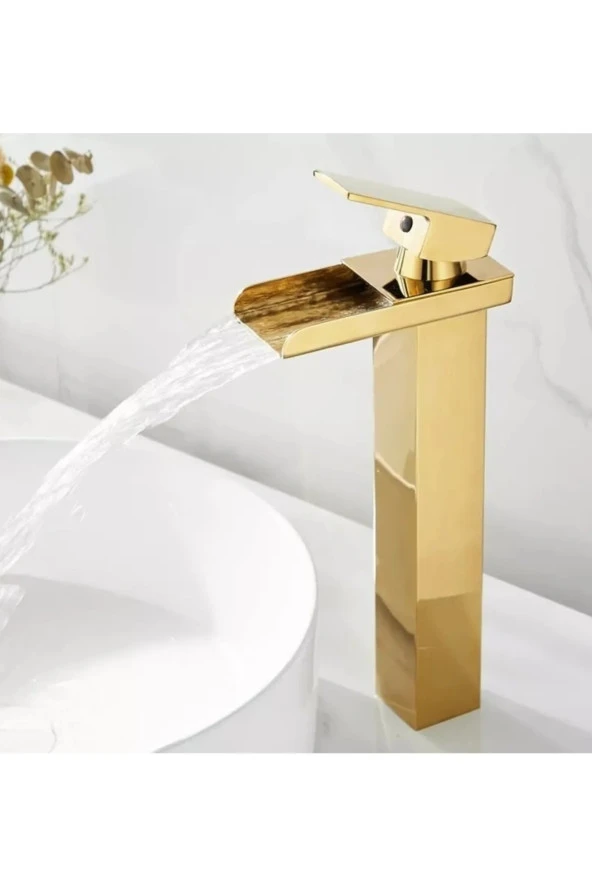 LAVABO BATARYASI MAT GOLD ŞELALE KARE GÖVDE EĞİMLİ HAVZA BANYO ARMATÜR ÇİFT GİRİŞ MUSLUK LÜKS ERGONOMİK