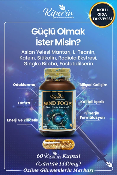 Kiperin Mind Focus Aslan Yelesi Mantarı, Sitikolin, Rhodiola, L-Theanin .. (1440mg) | Akıllı Gıda Takviyesi