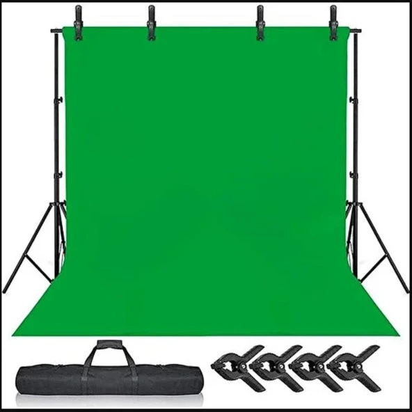 Rabsev 2x3m Yeşil Fon Perde + Fon Standı Seti 4 Mandal Green Screen Background