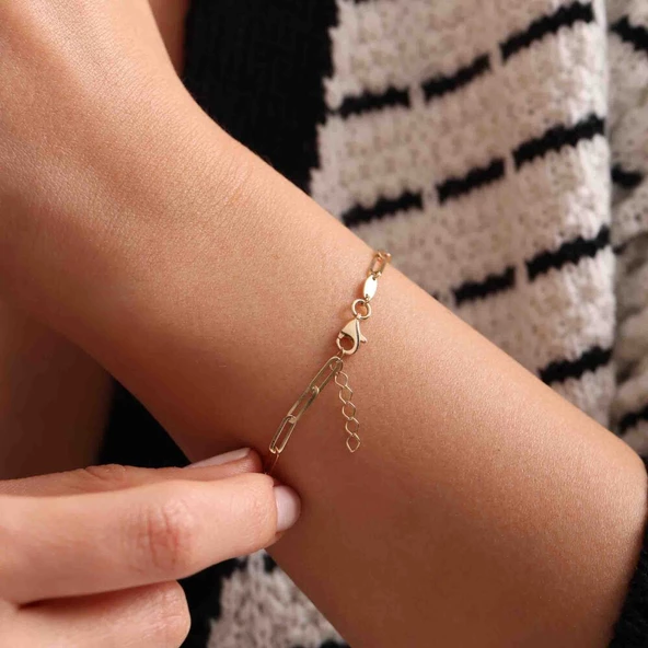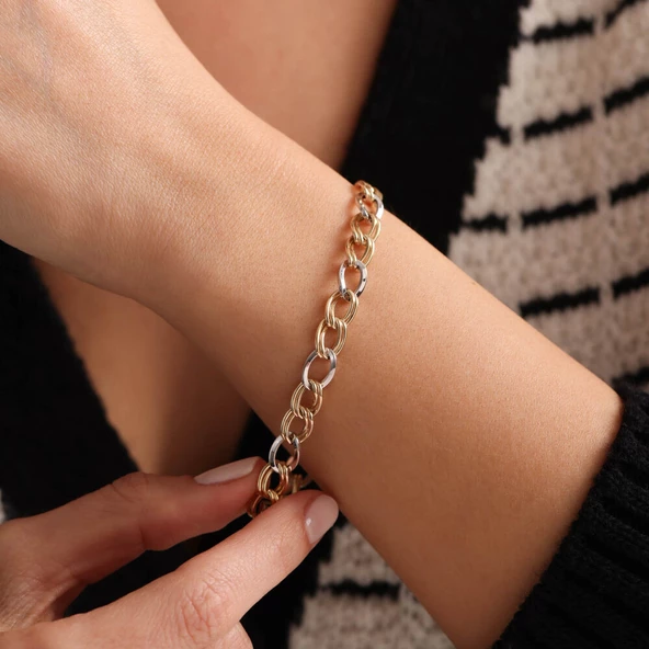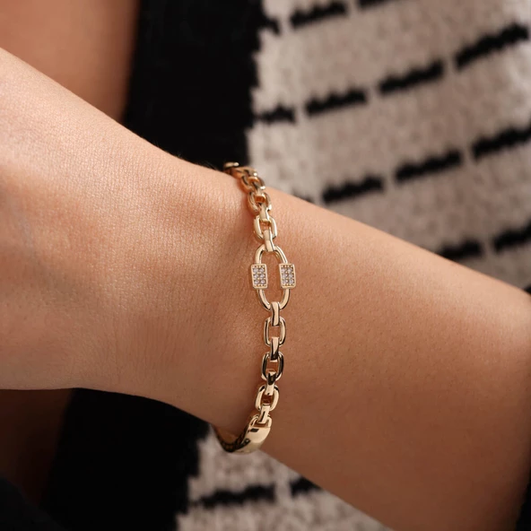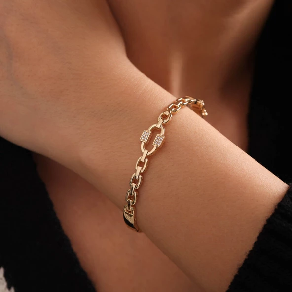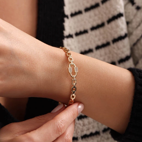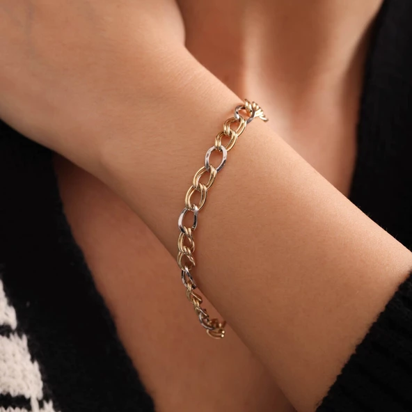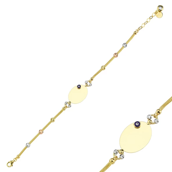 Plaka Altın Bileklik Oval 14K Gold Dorikalı