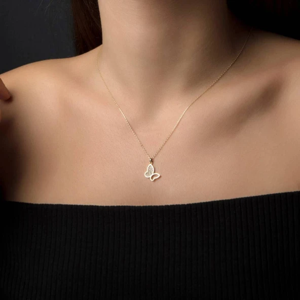 Kırlangıç Altın Kolye 14K Gold Taşlı