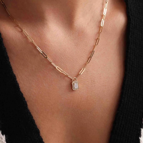Sonsuz Tektaş Altın Kolye 14K Gold