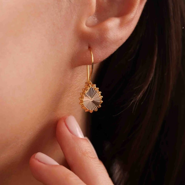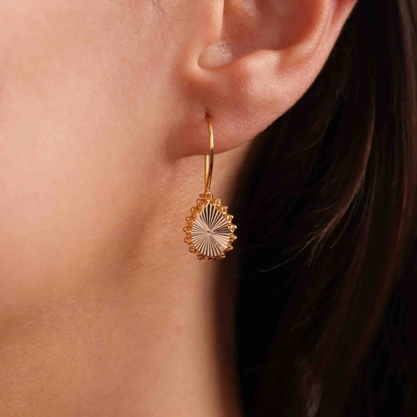 Damla Taşlı Altın Sallantılı Küpe 14K Gold