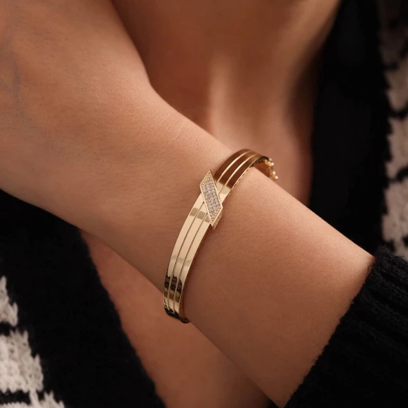Sosyeteli Altın Bileklik Firuze Taşlı İki Taraflıdır