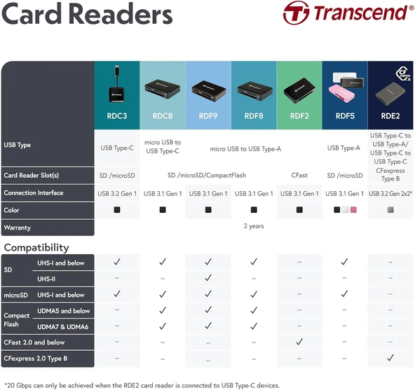 Transcend RDF9 USB 3.1 Gen1 UHS-II SD/MicroSD/CF Kart Okuyucu