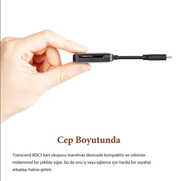 Transcend RDC3 USB 3.2 Gen1 Type-C SD/MicroSD Kart Okuyucu (Siyah)