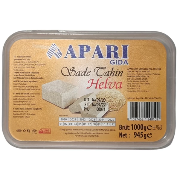 Apari Kürek helvası 1500 Gr Sade Teneke Kutu