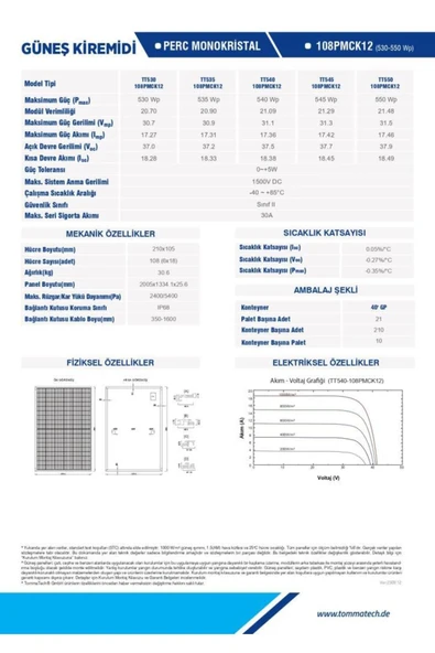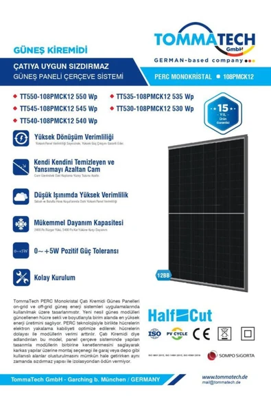 Tommatech 550Wp 108PM M12 HC-MB Güneş Paneli