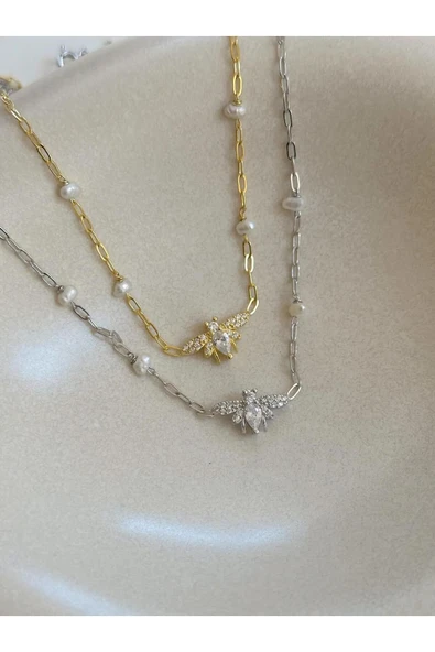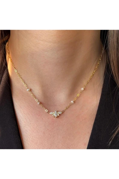 925 Ayar Gümüş İncili Arı Kolye