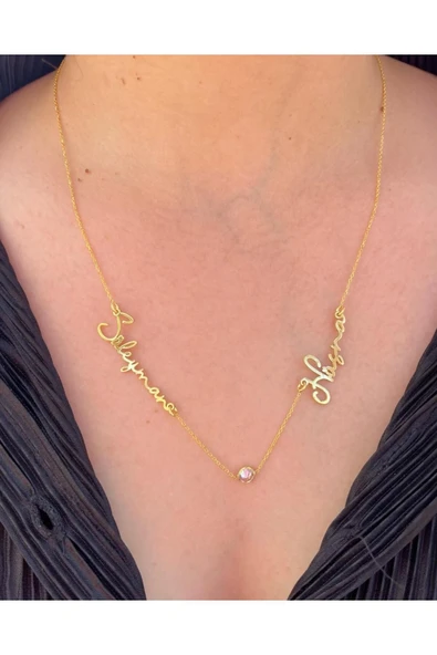 925 Gümüş | İki İsimli Taşlı Kolye