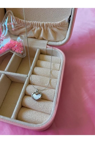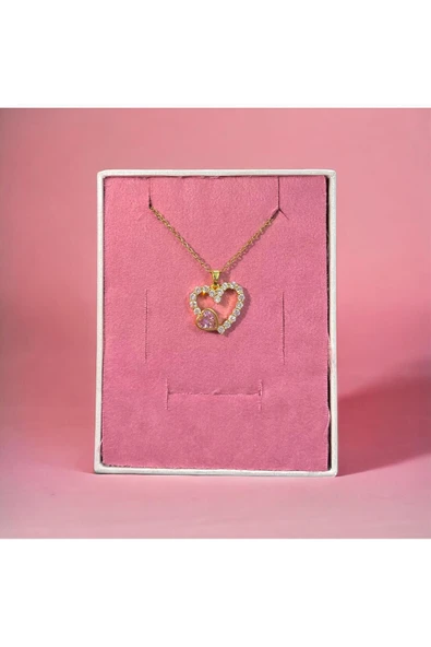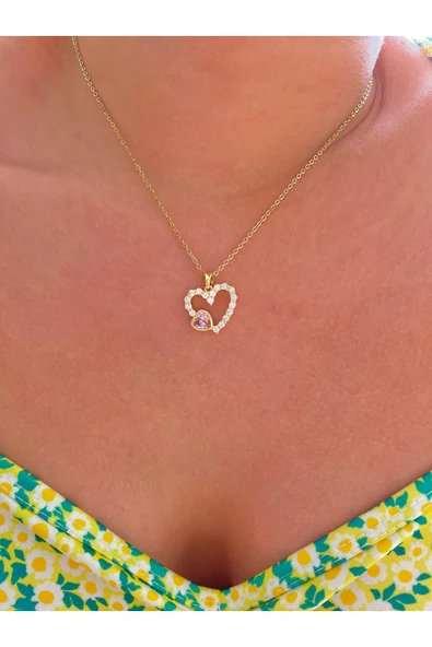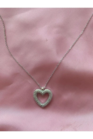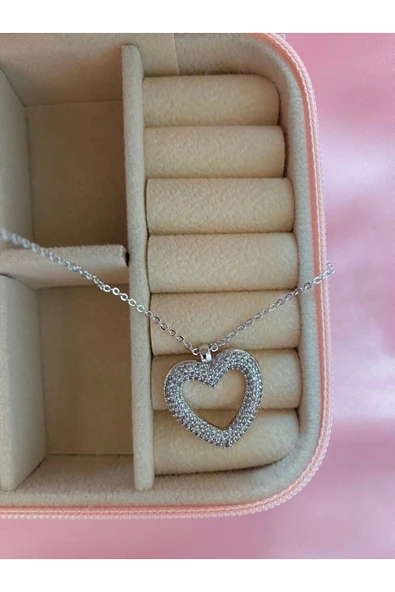 Zirkon Taşlı Içi Boş Kalp Figürlü Kolye