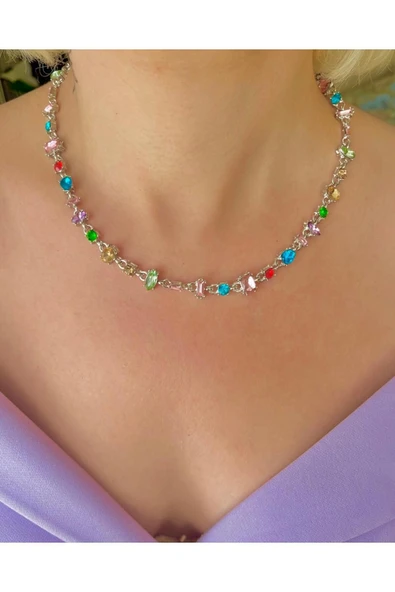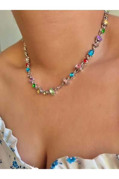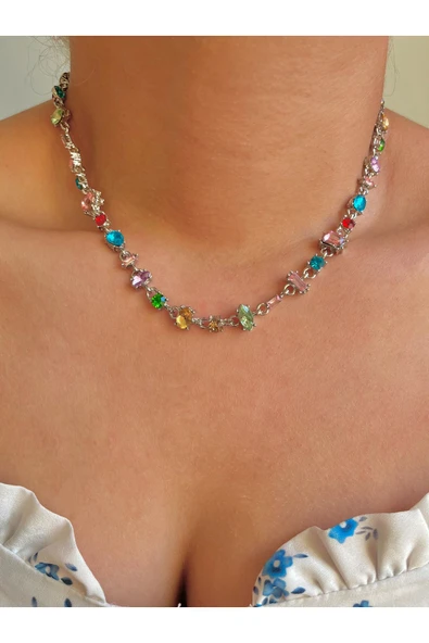 925s | Sallantılı Taşlı Choker Kolye