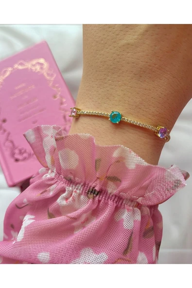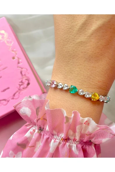 İthal Multicolor Kalpli Taşlı Bileklik