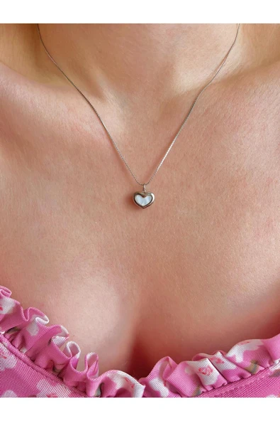 Kararmaz Çelik Minimal Sedef Kalpli Kolye