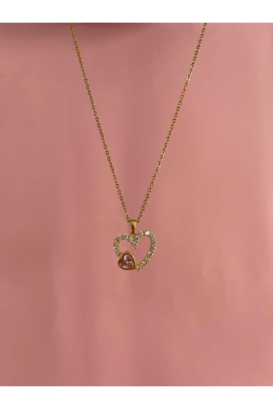 316L Çelik Kalp Zirkon Taşlı Kolye