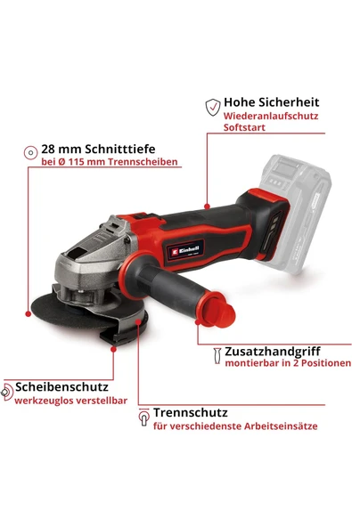 Einhell TE-AG 18/115 Li Kit (1x4,0 Ah), Akülü Avuç Taşlama
