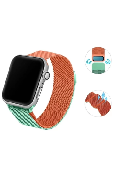 Apple Watch 1 2 3 4 5 6 7 Se Uyumlu 42 Mm/44 Mm/45 Mm Hasır Örgü Metal Mıknatıslı Milano Kordon