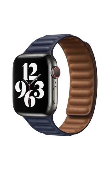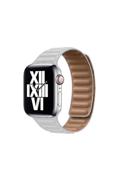 Apple Watch 7 6 5 4 3 2 Serisi 42 / 44 / 45 Uyumlu Baklalı Mıknatıslı Deri Kordon Kayış Kahve