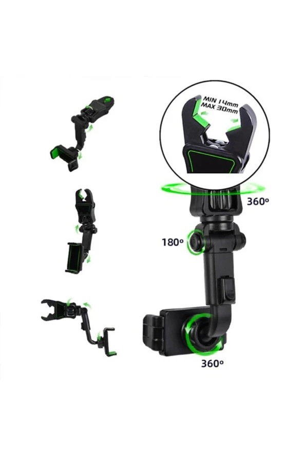 Araç Içi Telefon Tutucu 360 Dönebilen Multifonksiyonel Dikiz Aynası Araç Telefon Tutucu