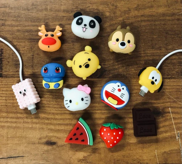 Sevimli Silikon Koruyucu Iphone Samsung Huawei Kablo Koruyucu - Şarj Aleti Kulaklık Için 4'lü Set