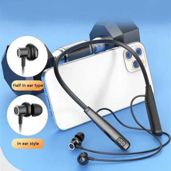 Y10 Sporcu Bluetooth Kulaklık 100 Saat Şarj Kapasiteli LCD Şarj Göstergeli Boyun Bantlı Kulaklık