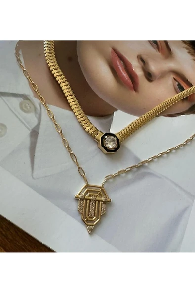 Altın Renk Serenay Kolyeler Kimler Geldi Kimler Geçti 2 li Çelik Set - 3167