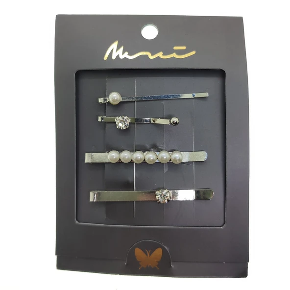 Gümüş Renk İncili Kombin Yan Toka - 2266