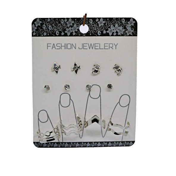 Gümüş Renk Kombin Yüzük Küpe Seti - 981
