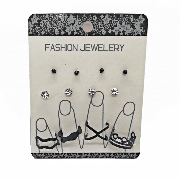 Siyah Renk Kombin Yüzük Küpe Seti 1136
