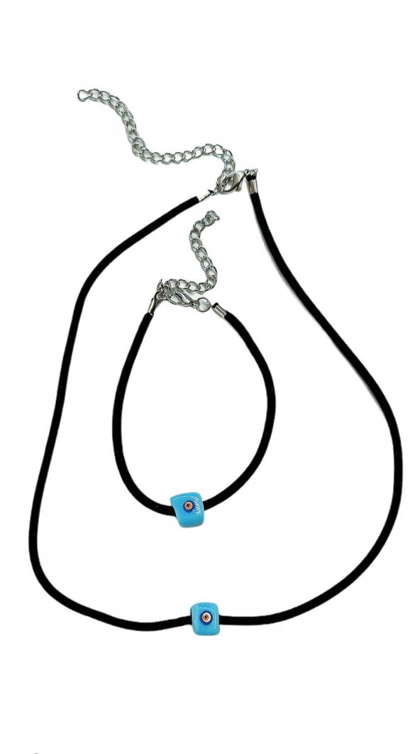 Cam Göz Kadife Kolye Ve Bileklik Set - 372