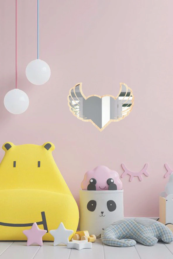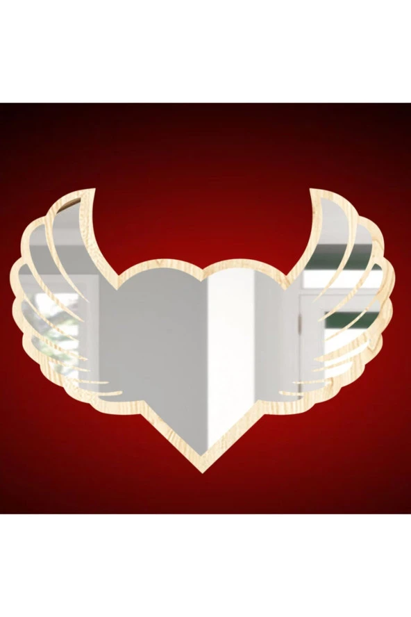 KEMSON Kanatlı Kalp Figürlü Dekoratif Ayna Güvenli Kırılmaz Ayna