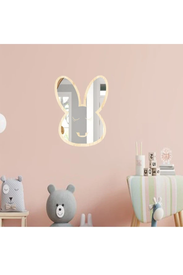 Odun Marketi Tavşan Figürlü Çocuk Odası Dekoratif Pleksi Ayna Gülen Yıldız
