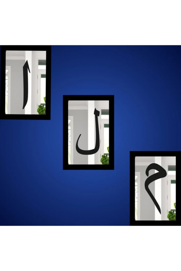 GİZEM SHOP 3d Elif Lam Mim 3'lü Set Gümüş Ayna (26*16) Dişi Gümüş Muhteşem Bir Hediyelik