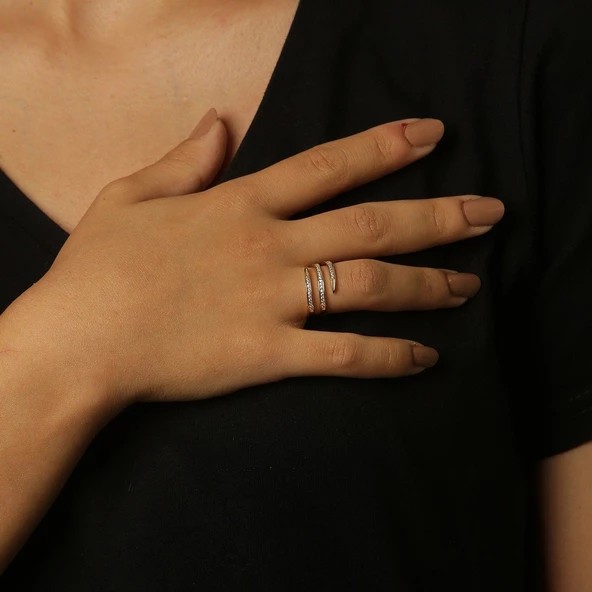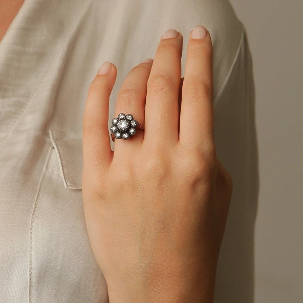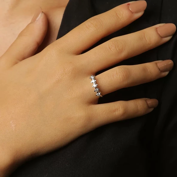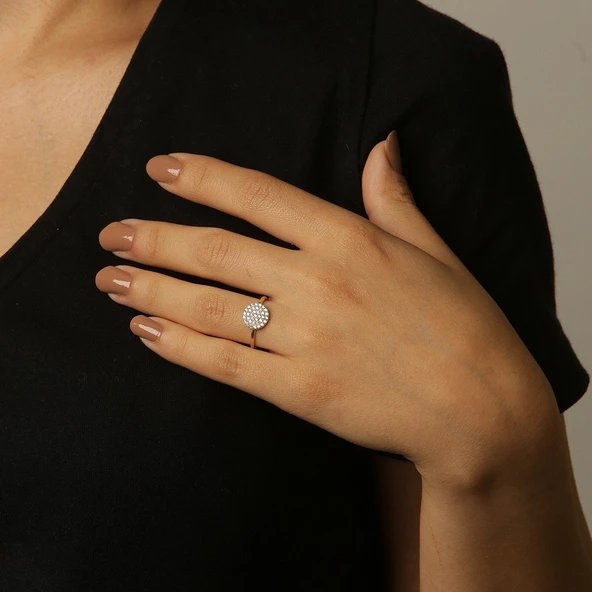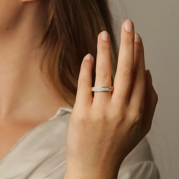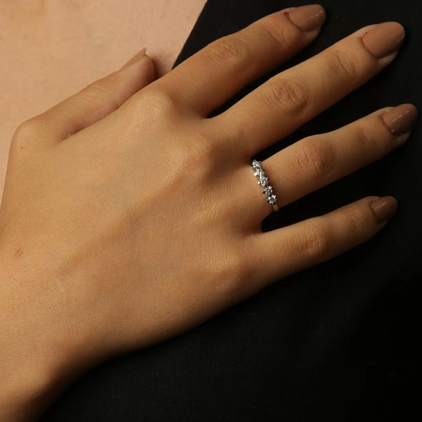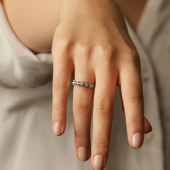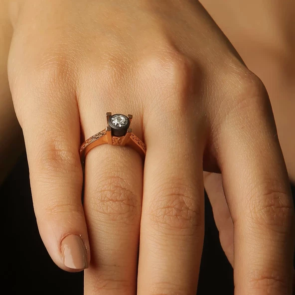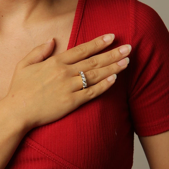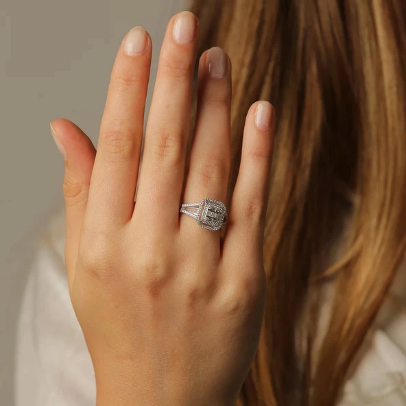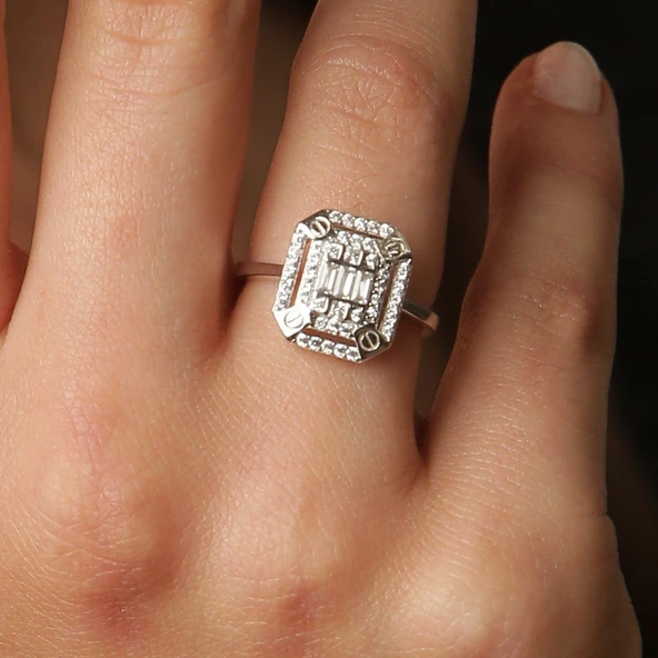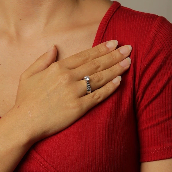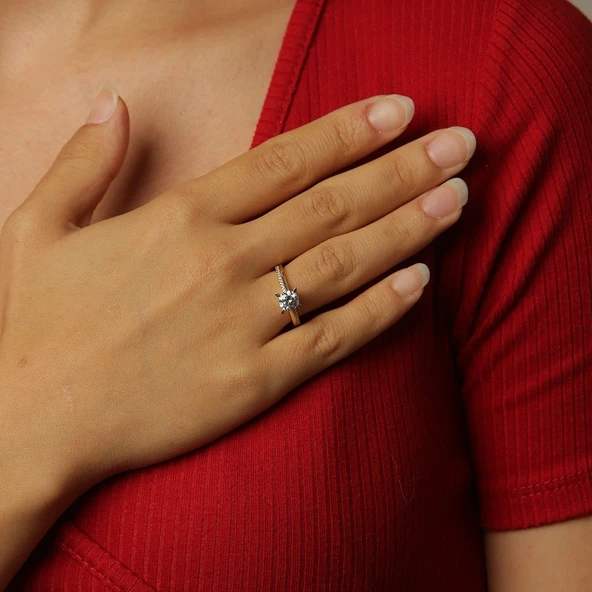 Beyaz Altın Kenarları Taşlı Tektaş Yüzük