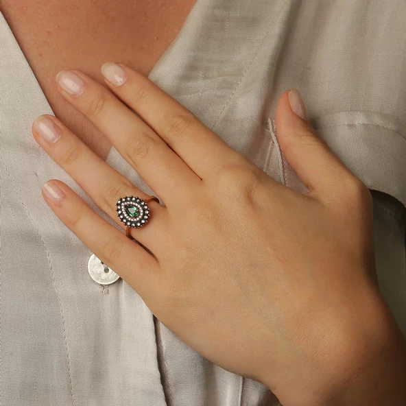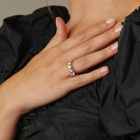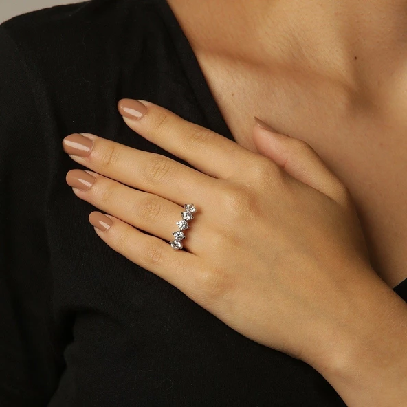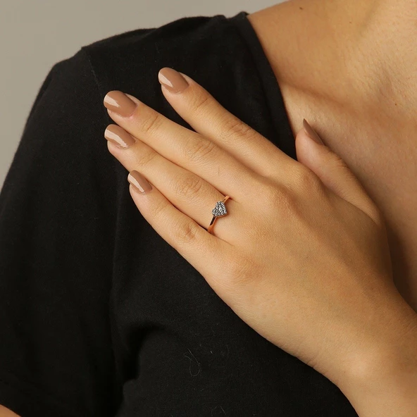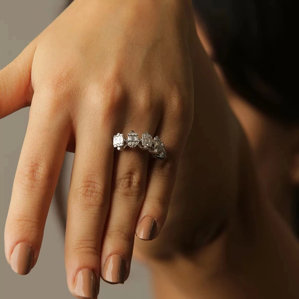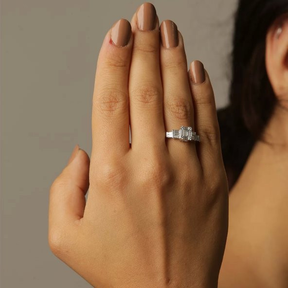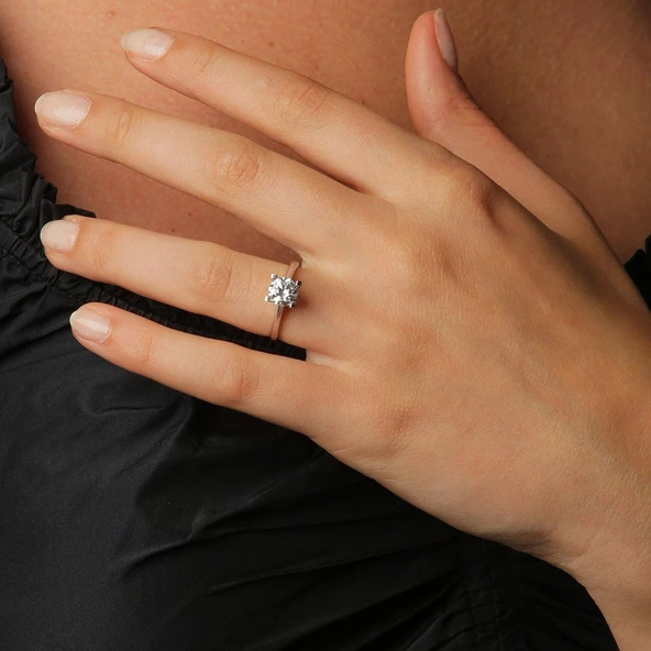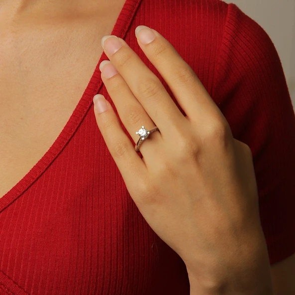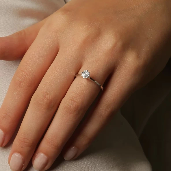 Beyaz Altın Damla Kesim Tektaş Yüzük