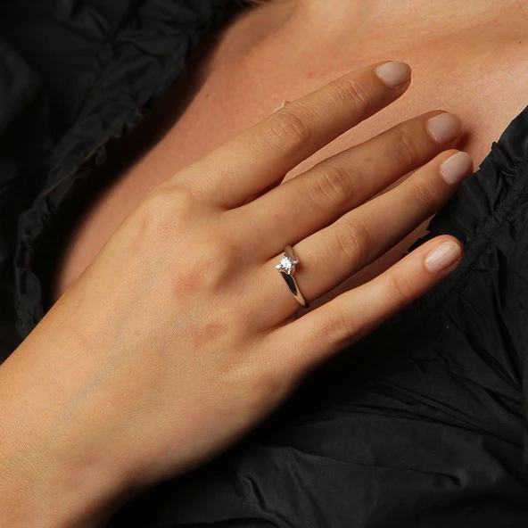 Pırlanta Prenses Kesim Tektaş Yüzük