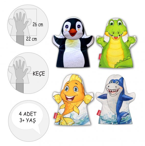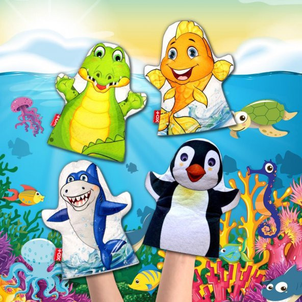 4 Parça Sudaki Hayvanlar El Kukla Set