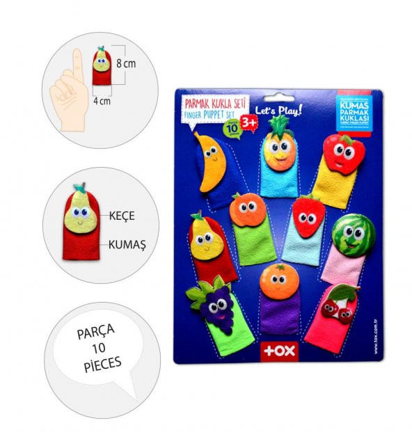 3 Set - 30 Parça Masal Kahramanları, Meyveler ve Sebzeler Parmak Kukla T105 T104 T225
