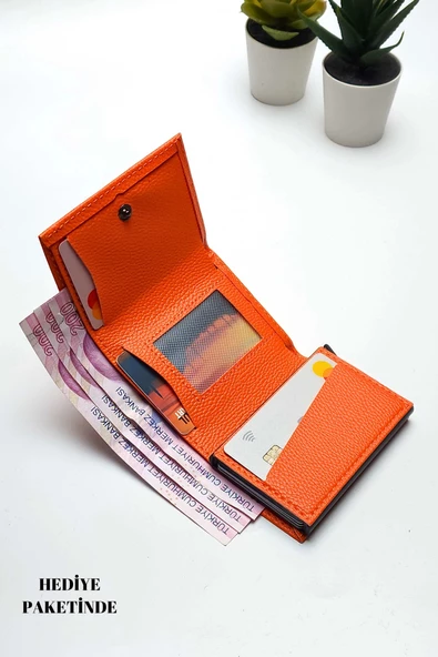 - Mekanizmalı Cüzdan Kartlık 9 Adet Kart Ve Geniş Para Bölmeli Rfıd Blocking Turuncu automatic
